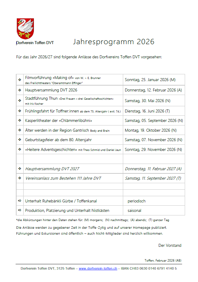 Hier finden Sie unsere verschiedenen Aktivitäten, die der Dorfverein während dem Jahr organisiert,